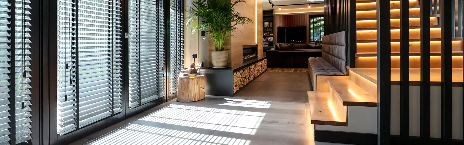 Horizontaljalousien sind das universellste aller Sonnenschutzsysteme. Durch die Möglichkeit, die Jalousie hochzuziehen und den Winkel der Lamellen zu verändern, kann der Benutzer die Menge des in den Raum einfallenden Lichts steuern. Während die Luft frei zirkulieren kann, schützen Horizontaljalousien Ihren Raum vor Überhitzung. Sie machen es auch einfach, sich vor neugierigen Blicken zu verstecken und trotzdem die gewünschte Menge an Licht durchzulassen.